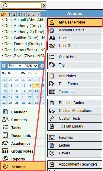 - In BestNotes, navigate to "Settings" and "My User Profile."