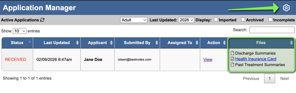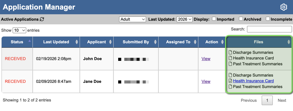 - In the Files column of the Active Applications table, you will see a list of all documents submitted by that applicant.